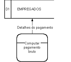 Sem nos comprometermos quanto ao aspecto físico, detectaremos na análise a existência de certos lugares onde necessitamos definir dados como armazenados entre processos. Depósitos de dados podem ser simbolizados por um par de linhas paralelas horizontais, ligadas em uma das extremidades, largas somente o suficiente para comportar o nome. Para facilitar a referência, cada depósito pode ser identificado por um “D” e uns números arbitrários, contidos numa caixa na extremidade esquerda. O nome deve ser escolhido de modo que seja bem significativo para o usuário.
